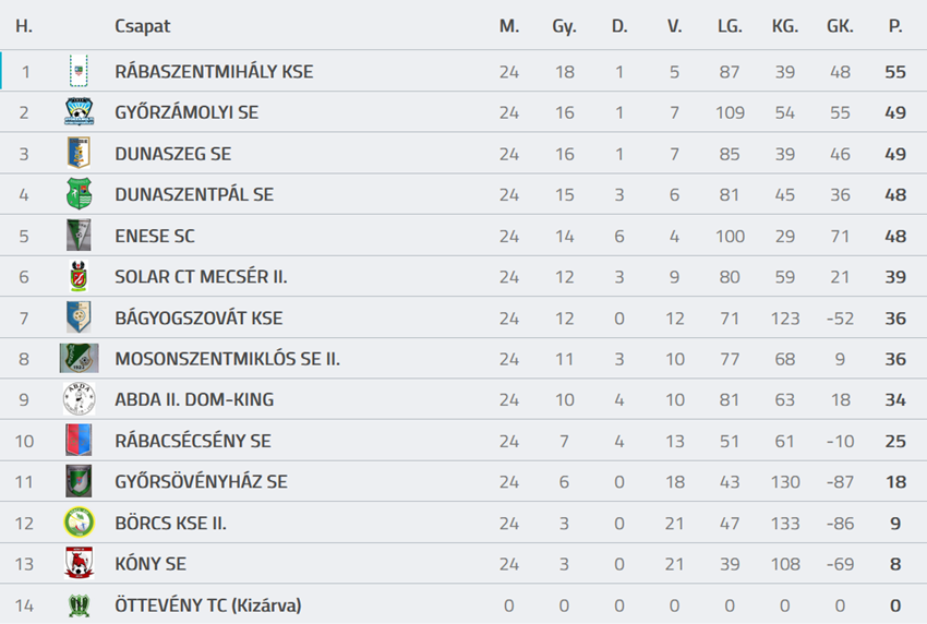 Győrsövényház – Győrzámoly 1–17 (0–7)