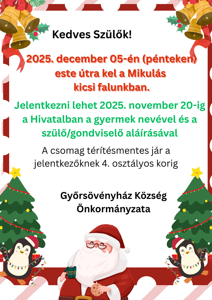 Idén is házhoz megy a Mikulás Győrsövényházon