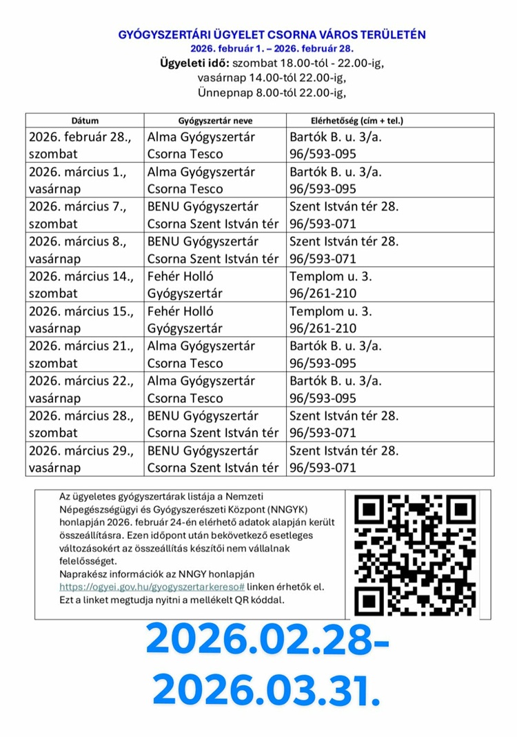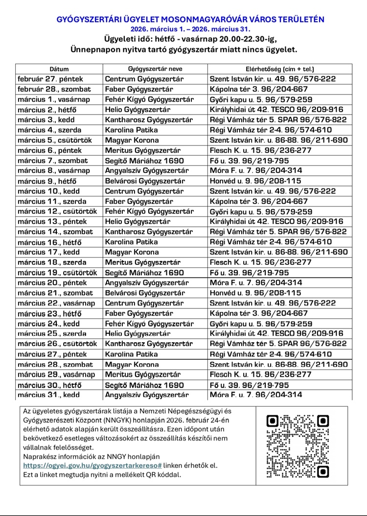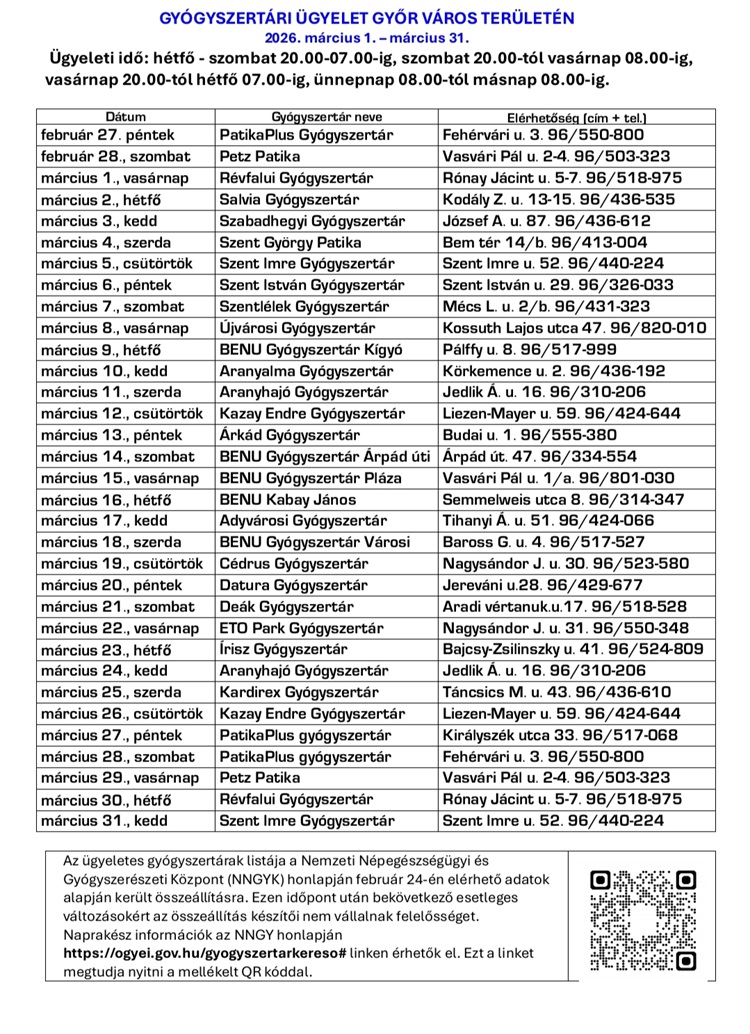 Így ügyelnek a győri, csornai és mosonmagyaróvári gyógyszertárak 2026. márciusban